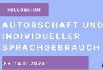 Im kommenden Wintersemester 2025/26 wird das linguistische Kolloquium von uns organisiert. Am 19.11.2025 freuen wir uns auf den Vortrag von Sina Zarrieß aus Bielefeld zum Thema „Bausteine sprachlicher Kreativität: eine … - Linguistisches Kolloquium „Autorschaft und individueller Sprachgebrauch“