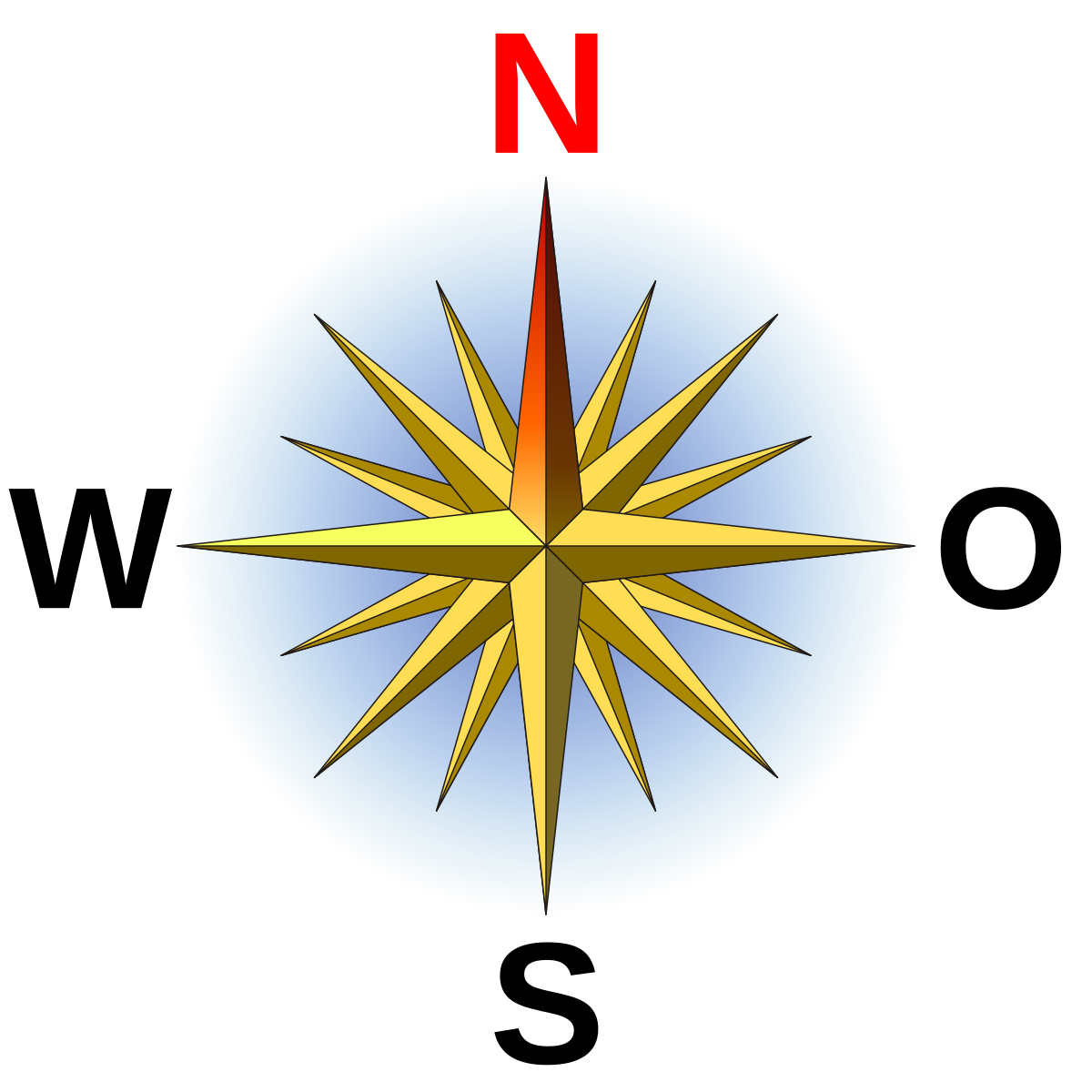 [1] Quelle: Wikimedia Commons, Nutzer Patrick 87, Quelle: https://commons.wikimedia.org/wiki/File:Compass_Rose_de_small_N.svg [Letzter Aufruf: 2015-09-04]